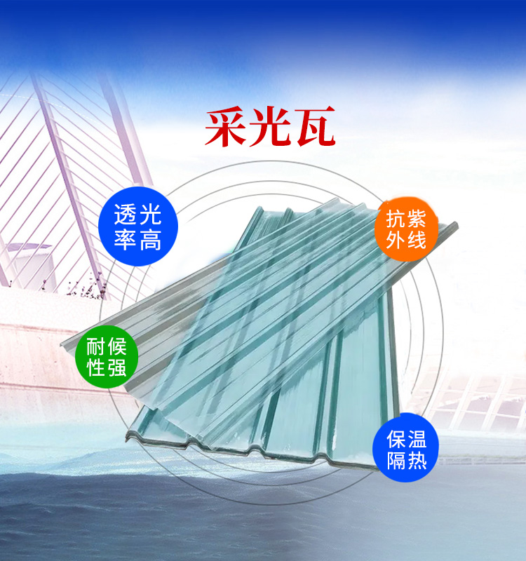 • 輕質(zhì)高強采光瓦便于搬運、安裝,其抗沖擊強度可達玻璃的200倍以上